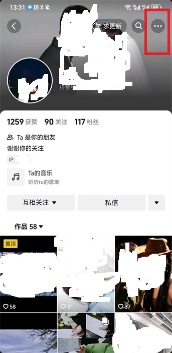 4、在对方主页界面,点击右上角的【...】进入到对好友的设置界面之中;