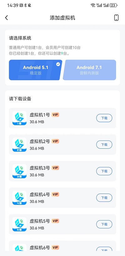 5、如果有多开的需求,则可以打开下方的【多开】,在多开页面可以选择【虚拟机】最多开十台。