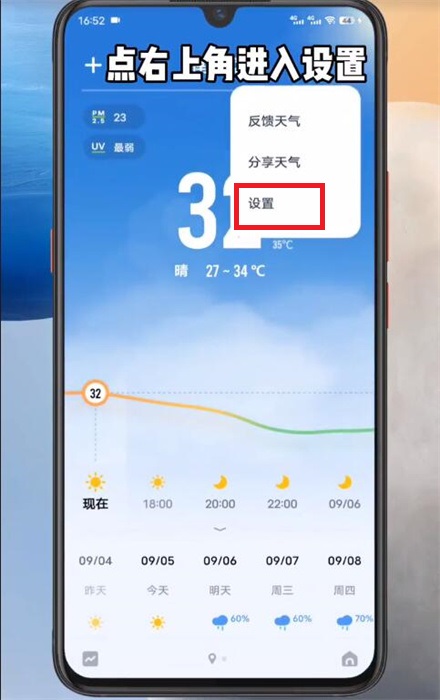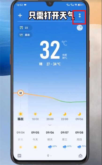 2、在天气软件界面,点击右上角的【...】就可以唤出功能;