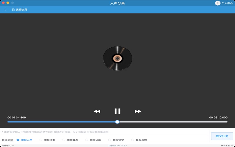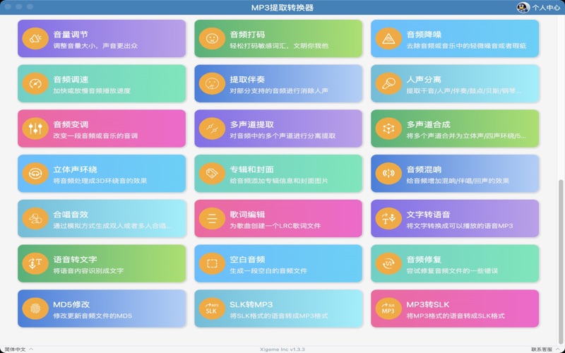 MP3提取转换器不仅是一款的批量音频提取器,它还是一款功能强大的音频处理APP,能够出色的完成一些常用的音频处理工作,导出无损MP3,给你好声音。 App包含功能有:在线提取、音频提取、格式转换、音频截取、音频拼接、音频分段、音频混合、淡入淡出、音量调节、音频打码、音频调速、音频降噪、提取伴奏、音频变调、声道提取、声道合并、语音导出、立体声环绕、专辑和封面、音频混响、铃声制作、Lrc歌词编辑等功能 目前支持的音乐格式有:mp3、wav、ogg、m4a、aac、m4r、wma、flac、ac3、mmf、amr、wv、slk、silk、mp2、mpegh 3d audio、mhm1、mha1 目前支持的声道有:单声道、立体声、四声环绕、5.1立体声、7.1立体声 在线提取:在线从网页中提取音视频 音频提取:支持批量从视频中提取无损mp3或者其他格式的音频,支持多音轨提取 格式转换:将音频文件转换成不同的音乐格式 音频截取:从音频中截取一段保存或者删除某一段 音频拼接:将多个音频拼接成MP3 音频分段:支持按照时长分段或者文件个数进行分段 音频混合:将多个音频混合成一个音频 淡入淡出:对音频的开始和结尾进行淡入淡出 音量调节:调节音频音量的大小 音频打码:对某段音频用'哔~~'的提示音替代 音频调速:调整音频播放速度 音频降噪:降低音频的中的噪音 音频插入:往一段音频中插入一段新的音频 声音录制:录制自己的语音并生成录音文件 提取伴奏:从音乐中去除人声 人声分离:从音乐中提取人声、伴奏、钢琴、鼓点、贝斯等音效 音频变调:调整音频的音调进行变声 多声道提取:将音频中的多个声道分离提取 多声道合成:合并多个声道到一个音频 语音导出:将常见的语音消息进行合并导出 立体声环绕:将音频制作成3D环绕音 专辑和封面:给音频添加专辑和封面信息 音频混响:对音频进行混响 歌词编辑:制作Lrc歌词 均衡器EQ:提供专业版31段均衡器调节 合唱音效:将一段音频模拟出二人/三人/多人等合唱效果 语音转文字:将录音文件转成文字txt文件 文字转语音:将一段文字转成音频语音,并提供多种音色以供选择 MD5修改:修改变更音频文件的MD5信息 SLK转MP3:将SLK格式的音频转成MP3格式 MP3转SLK:将MP3格式的音频转成SLK格式 更多功能等你来发现。 - Fix some crash bugs