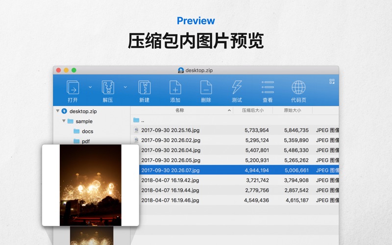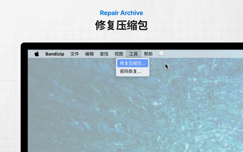 Bandizip 在 macOS 上提供快速的解压速度、多样化的功能和直观的用户界面。 它不仅可以轻松解压ZIP、7-zip(7z)等常用压缩文件,还可以解压RAR(包括RAR7)、EGG、ALZ等压缩文件,并支持大多数压缩文件。 适用于macOS平台的一体化归档 # 主要功能 •全包压缩/解压缩/浏览/编辑应用程序 •支持操作系统: macOS Catalina (10.15), Big Sur (11.0), Monterey (12.0), Ventura (13.0), Sonoma (14.0), Sequoia (15.0), Tahoe (26) •提取30多种格式,包括:RAR/RAR5/RAR7/7Z/ZIP # 压缩 •压缩成ZIP和7Z,TAR,GZ,TGZ格式的文件 •ZIP文件修改(添加/删除/重命名) •使用多核时压缩率比Finder可以最多快6倍 •创建加密归档文件 •支持AES256加密算法 •支持4GB +大小的文件压缩 •ZIP格式的Unicode或MBCS文件名 •创建ZIP/7z格式的多卷归档文件 # 解压 •支持的格式: 7Z, ACE, AES, ALZ, ARJ, BH, BIN, BR, BZ, BZ2, CAB, Compound(MSI), DEB, EGG, GZ, IMG, ISO, ISZ, LHA, LZ, LZH, LZMA, PMA, RAR, RAR5, SFX(EXE), TAR, TBZ, TBZ2, TGZ, TLZ, TXZ, UDF, UUE, WIM, XPI, XXE, XZ, Z, ZIP, ZIPX, ZPAQ, ZST •轻松查看归档文件列表 •只提取选定的文件。也支持拖放 •ZIP和RAR格式的归档注释可用 •一站式提取TGZ/TBZ格式的文件 • Fixed an issue where icons were not displayed in the Finder menu. • Added a switch to allow external symbolic links via the command line. • Other minor UI improvements and stability improvements