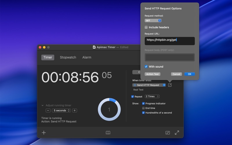 秒表、倒计时器和闹钟,三合一专业 Mac 应用 Timer 让你在 Mac 上的时间管理变得简单可靠。无论你是在学习、工作、训练,还是进行实验,它都能为你提供精准的工具来测量、安排,并在恰当的时刻提醒你。清晰直观的界面让每个功能都易于使用,而在幕后,它又具备专业人士所需的精确性与灵活性。 精准计时 当精确性至关重要时,你可以依靠 Timer。秒表可精确到百分之一秒,并支持圈速记录,让你不会错过任何细节。计时器可自动重复,帮助你安排学习、锻炼或循环任务。即使系统时间因时区、夏令时或手动调整而变化,秒表和计时器依然保持准确。 灵活的通知与操作 计时或闹钟结束时,你可以决定发生什么:播放音乐、显示或朗读信息、播报当前时间、打开应用或文档、启动网页、发送 HTTP 请求,或者仅接收简洁通知。你可以调节声音音量、设置重复次数,甚至让 Timer 每次用不同的声音来给你惊喜。凭借内置的安全保障,如果某个操作无法执行,你仍会听到清晰的提示音,确保不会错过任何重要提醒。 快速便捷 借助收藏、推荐和最近使用菜单,启动计时器只需一次点击。你可以选择预设的 1、5 或 10 分钟,快速重用最近的时间间隔,或保存常用的收藏以便即时启动。对于需要记录的人来说,改进后的日志系统会在你需要时保存当前状态,支持专业本地化和清晰格式。 功能亮点 • 专业级秒表、闹钟和倒计时器,专为 Mac 设计 • 简洁直观的界面 • 百分之一秒的精确度,支持圈速记录 • 重复计时器,方便处理循环任务 • 完全自定义的通知和声音 • 安全保障机制,确保不会错过提醒 • 收藏、推荐和最近菜单,快速设置计时器 • 日志系统,可靠保存你的使用记录 • 灵活的结束操作:播放音乐、显示或朗读信息、播报时间、打开应用或文档、启动网页、发送 HTTP 请求或触发通知 • 高级便利功能:全屏模式、窗口最小化、并行多个计时器 • 多语言支持,自动跟随 Mac 系统语言(英语、德语、西班牙语、法语、意大利语、日语、韩语、葡萄牙语、俄语、简体中文) 订阅与购买 购买后你将解锁应用的所有核心功能: • 创建和运行计时器(支持计划、重复选项、实时调整和详细日志) • 使用秒表及其圈速和最近圈速功能 • 设置并启用完全可自定义的闹钟及高级结束操作 此外,订阅用户还将持续获得改进、新功能以及定期更新,确保应用的使用体验不断演进和提升。 可选方案: • 月度订阅:1 周免费试用,之后按月价自动续订 • 年度订阅:2 周免费试用,之后按年价自动续订 • 永久购买:一次性付款,享受所有功能无限制使用 订阅会自动续订,除非在到期前至少 24 小时取消。你可随时在 App Store 账户设置中管理或取消订阅。 隐私政策:https://www.apimac.com/about/privacy/ 使用条款 (EULA):https://www.apple.com/legal/internet-services/itunes/dev/stdeula/ 全面重构。Timer 已完全重写,充分利用最新的 macOS 技术,带来更强的安全性、更高的性能,并支持更多语言。 更智能的提醒与声音。通过专用控制精确调整音量,决定重复次数,或让 Timer 每次选择不同的提示音。 全新计时选项。现在你可以在指定时间启动计时器,在运行过程中增减时间,并设置自动重复以满足周期性活动。 更灵活的动作。计时结束后,Timer 给你完全的自由:播放音乐、显示或朗读信息、播报时间、打开应用或文档、网页、HTTP 请求、记录当前状态或仅发送通知 —— 并通过安全保护机制确保始终有提醒。 真实测试。通过新的“真实测试”选项,你可以准确模拟计时结束时的行为,不会有意外。 改进的全屏模式。新增主题、颜色、透明度和自定义消息,非常适合教室、实验室和演示场景。 增强的日志功能。“立即记录”会保存完整清晰的会话记录,数据经过专业本地化。 更安静的提醒。如果你喜欢安静的方式,新增加的“仅通知”选项会直接将提醒发送到 macOS 通知中心,无需声音或弹窗。 安全与稳定。所有功能均遵循最新的 macOS 指南,保证更安全、可预测和可靠的运行体验。