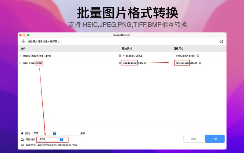 ImageResizer - 图片调整与格式转换 批量调整图片尺寸并即时转换格式。一键将 HEIC 转换为 JPG。 主要功能: * 图片调整 - 批量调整多张图片尺寸,自动保持宽高比例 * 格式转换 - 将 HEIC 转为 JPG、PNG 转为 JPEG 等多种转换 * 拖拽操作 - 直接拖入图片,无需复杂设置 * 批量处理 - 同时处理几十张图片 * 多格式支持 - 支持 HEIC、JPEG、PNG、TIFF、BMP 适用场景: * 将 iPhone HEIC 照片转换为通用 JPG 格式 * 为网站和社交媒体调整图片尺寸 * 准备邮件或网页上传用图片 * 统一不同设备间的图片格式 简单流程: * 导入 → 选择尺寸/格式 → 转换 * 节省时间,专业效果。图片处理必备工具。 修复 bug 改进性能