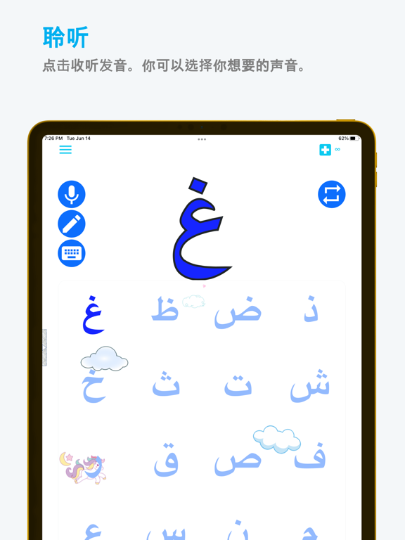 通过视觉联想技巧,轻松学习 阿拉伯语。从字母到日常对话,Emme 阿拉伯语 让语言学习变得有趣又轻松! Emme 阿拉伯语 是您掌上的私人语言老师。借助图像联想法,学习 阿拉伯语 变得轻松愉快。无论您是巩固基础、提升口语,还是系统学习新知识,Emme 阿拉伯语 都会陪伴您一路前行。 # Emme 阿拉伯语 独特的学习方式 • 视觉联想学习:将生动图像与单词关联,加深记忆效果。 • 多样化学习内容:从字母、数字、词汇、句子到日常会话,提供系统的学习路径。 • 游戏化学习体验:通过积分系统与趣味挑战保持学习动力。 • 发音练习:聆听母语者的发音,练习标准语音。 • 写作练习:通过 AI 手写识别功能进行书写与听写练习。 • 个性化学习节奏:根据自己的节奏进行学习,随时随地都可学习。 # 学习内容包括 • 字母与数字:从基础开始掌握语言技能。 • 基础词汇:结合视觉元素轻松记忆单词。 • 实用对话:涵盖旅游、购物、问候等日常交流表达。 • 百科知识:结合维基百科了解阿拉伯语背后的文化背景。 # 支持的语言 本版本专注于教授 阿拉伯语。 # 有趣的学习体验 • 可爱角色陪伴:在学习之路上结识有趣的伙伴。 • 直观界面:设计简洁,任何人都能轻松使用。 • 多样输入方式:支持麦克风、手写笔、键盘等多种方式参与学习。 • 成就感提升:随着学习进度获得奖励和满足感。 # 为什么选择 Emme 阿拉伯语? • 有效的学习法:通过图像联想加强长期记忆。 • 趣味学习体验:告别枯燥死记硬背,让学习充满乐趣。 • 随时随地可学:在通勤途中或短时间内高效学习。 • 适合所有年龄段:无论是儿童还是成人,都能轻松开始学习阿拉伯语。 # 免费开始使用! Emme 阿拉伯语 提供每日免费学习点数和基本功能。通过应用内购买升级为高级版,即可解锁无限学习点数与更多学习内容。 立即开启与 Emme 阿拉伯语 的语言之旅,体验学习阿拉伯语原来也可以如此有趣! New Features • Faster app launch for a smoother start. • Added a shuffle option to Auto Play for learning content. • Refreshed app icon on Mac for a cleaner look. • Updated UI with a modern glass-like texture. • Enhanced UX tailored to age-specific ratings. • App now adapts to the device’s system text size for improved accessibility. Bug Fixes • General improvements and stability enhancements