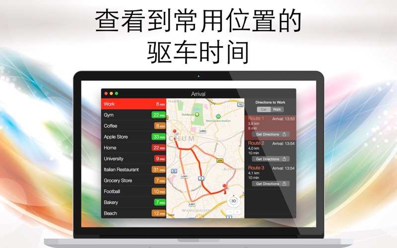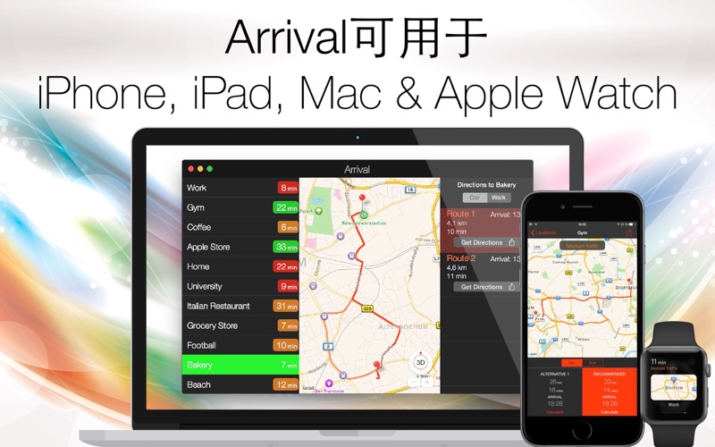 Arrival促销中! 省50%! Arrival可显示你的旅行时间,并为您搜寻常用位置的最佳最快路线,一键获取逐向导航。 本应用是个人驾车(步行)的好帮手,可显示当前交通状况、预计到达时间及所需旅程。Arrival还可提供不同的路线并为您推荐最佳路线。 支持各种设备 Arrival不仅可在iPhone上使用, 还提供一个Apple Watch、iPad及Mac版本。 本应用还深度集成了iCloud同步和Handoff功能。 HANDOFF 所有收藏位置可在你的所有设备上显示。使用Handoff,可在你的iPad或Mac上查看驾驶(或步行)时间,并在你的iPhone上即刻获取逐向导航。 APPLE WATCH 在Apple Watch上,只需抬起手臂,轻点一下即可获取逐向导航。 路线 驾车或步行时可为您提供路线。 快速 Arrival速度很快,无需再搜索常用位置。此外,我们已努力将启动导航所需的点击次数和时间减至最低。使用设备内置导航应用,寻找目的地通常需要长达一分钟时间,使用Arrival,只需几秒即可搞定。 好伴侣 Arrival还是你最爱的导航应用(如Google地图或Apple地图)的好伴侣,它提供有适用于iPhone、iPad和Mac的版本。除此之外,它还提供了一个很棒的通知中心小部件。