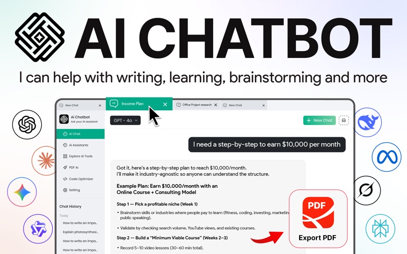 认识AI聊天—无所不答的智能助手。由GPT模型驱动,随时陪伴,助你解决问题、提供灵感。 需要快速解答、写作帮助或倾诉伙伴?AI聊天,让一切简化。不论是学习笔记、工作邮件或创意头脑风暴,这款应用为你而生。 使用AI聊天,你可以: • 探索20+强大AI工具 • 体验内置代码编辑器 • 创建自定义角色助手(医生、理财顾问等) • 提任何问题,获得迅捷直接的答案 • 轻松写作论文、电邮、帖子或故事 • 将长文简化为概要 • 保存对话,随时重温 • 多聊天标签加速访问 • 用语音自然与AI交流 注意:本应用与OpenAI无关。我们使用OpenAI官方API提升体验。本应用不提供医疗建议。任何医疗决策前,请咨询医生或专业医护人员。无限使用需额外购买。 即刻下载,让日常工作、学习和交流更智能、更高效。 若有疑问,请联系我们:help.imapps@gmail.com 隐私政策: https://www.termsfeed.com/live/5b96ad52-bc81-4c8a-90ed-14b024294959 服务条款: https://www.termsfeed.com/live/7b1553a3-be08-4be1-b127-ae619ee84ffc - 修复错误,聊天更流畅 - 增加多聊天选项支持