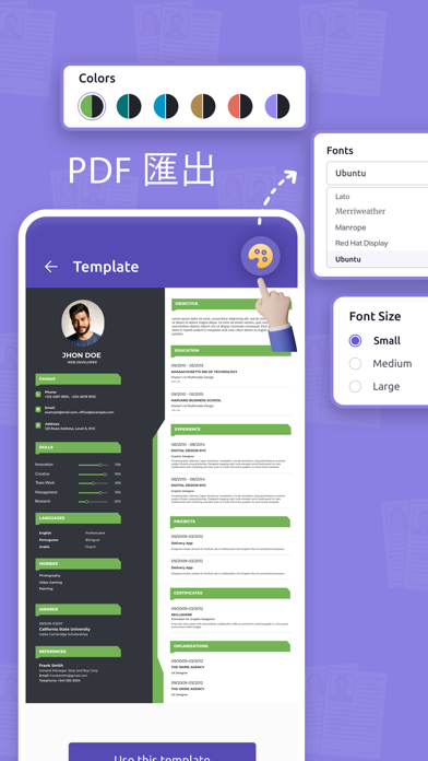 使用简历生成器应用程序免费的简历制作器,在不到 5 分钟的时间内轻松创建和管理您的简历或简历员工,从而找到您梦想的工作。任何寻找更好职业机会的人,都可以通过各种数据驱动的简历模板、自定义功能、多种语言和最新的招聘趋势,以两倍的速度获得. 创建、查看和共享 1. 填写个人信息并选择您想要的简历模板。 2. 点击预览您的简历。 3. 在多个平台上保存和共享 PDF。 Free Resume Builder CV Maker 的特点 * 用户友好的界面:具有直观且易于导航的界面。 * 专业模板:为求职者提供经过招聘人员测试的简历模板,吸引潜在雇主的注意。 * 以 PDF 简历格式保存和分享:允许用户立即将简历保存为 PDF 并与全世界分享。 * 客观建议:拥有针对多个领域的写得很好的客观建议。 * 多种语言:用户可以从选项列表中选择他们的首选/母语。 * 广泛的自定义选项:启用/禁用功能允许隐藏不相关的内容,个人资料图片是可选的。 * 编辑字体颜色、大小和样式:自定义模板的字体颜色、大小和样式。 订阅计划 立即通过按年或按月订阅付费版,享受无广告和无限制的简历模板。确认购买后,您的付款将记入您的 iTunes 帐户。其次,您的订 阅会自动续订,但您可以在当前订阅期结束前 24 小时访问您的帐户设置来关闭自动续订。 Enjoy seeking new opportunities with career edge resume builder/resume editor. No need to spend hours and days building a professional resume. CV builder iOS app/resume editor is getting all the work done for you. CV builder free resume maker offers a rich array of customizable professional resume templates and sharing options as a PDF resume format in one go. Also, Resume CV Builder multilingual app offers content hiding and swappable feature, font family editing, optional photo addition, and more. Plus, this Resume CV Builder app/resume editor lets users utilize live feedback. For queries, Contact us at support@codematics.co Terms of Use: https://www.apple.com/legal/internet-services/itunes/dev/stdeula/ 整体性能和可靠性提升。 更新了用户界面间距和布局,提升了应用整体的一致性。 优化了加载状态,带来更流畅的用户体验。