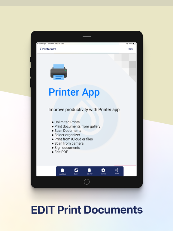 Printer App - Print Documents, PDFs, Photos and Generate AI Images Printer App is the all-in-one utility that lets you print documents, PDFs, photos, and now even generate AI images. Whether you’re using an iPhone or iPad, you can scan, organize, annotate, and print everything with just a few taps. Easily import files from iCloud, your photo library, or camera, and manage all your documents in one place. It’s fast, simple, and secure. New AI Image Generation Feature Create stunning images instantly using just text. Type what you imagine, and the app will generate an AI-powered image you can save or print. Perfect for creative projects, inspiration, or quick visuals. Example: Type “a futuristic city skyline at night” and get a printable image in seconds. Key Features • Built-in scanner for high-quality scanning • Print from your photo gallery • Print from iCloud and cloud drives • Organize files with folders • Edit and annotate PDFs • Add pages to documents and print • Sign documents digitally • Share and export your PDFs • Works seamlessly on both iPhone and iPad File Manager Tools • Share and export files • Rename documents • Duplicate files • Email files • Delete files Printer Settings • Print from cloud storage • Choose black and white or color • Portrait or landscape orientation Privacy and Security • Lock the app with a passcode to keep your documents safe Print smarter, faster, and more creatively with Printer App. • Feedback & Support Have questions or feedback? Contact us at info@swiftygarage.com. Read our privacy policy and terms of conditions at Privacy Policy: https://swiftygarage.com/privacy-policy.html Terms of Use: https://swiftygarage.com/terms-of-use.html - Addressed minor bugs and improved overall performance