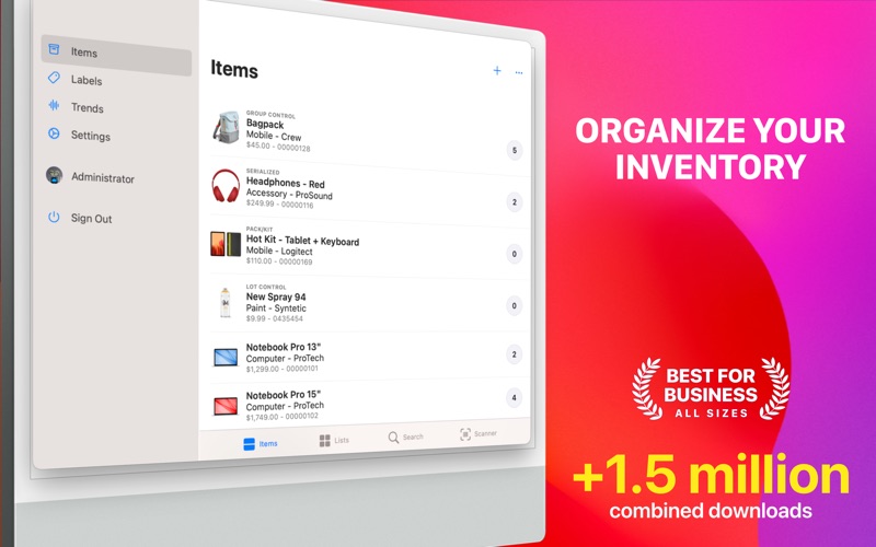 这款神奇的应用程序是使用功能强大的条码扫描器整理库存的最快、最简单的方法。出色的库存追踪工具,可让您以前所未有的方式列出、搜索、添加或扫描商品。简单直观的用户界面使您的合作伙伴、员工或团队成员可以更轻松地开始无缝管理您的库存。 一项非凡的定制功能,允许您整理任何类型的物品,例如序列化、批次控制、分组控制、包装/套件、不可库存、服务和批量物品。 它专为小型企业和任何类型的组织而设计,高度可定制且易于使用。 条码扫描器 • 强大的扫描工具,可让您即时快速列出、打开、添加或调整库存商品。 • 现在,您可以轻松使用外部蓝牙条码设备。 条形码生成 • 在应用程序中即时创建和打印条形码图像。 • 使用大多数标准形状的不干胶纸(A4、US Letter 和 Rolls)设计和打印条形码标签。 • 支持自定义 SKU 代码的 EAN 8、EAN 13、UPC 和代码 39/93/128/QR/QR mini。 清单 • 智能列表(收藏夹、已标记、已过期/即将过期等)可让您更有效地组织项目。 • 创建自定义项目列表并在团队成员之间共享。 可定制 • 为视图和报告创建自己的自定义属性集。 • 根据您的品牌需求自定义报告(字体、页眉、页脚、颜色和徽标)。 • 登录时显示用户照片或公司徽标。 • 主题颜色。 报告 • 打印、通过电子邮件发送和共享时尚的 PDF 文件。 • 导入和导出 CSV 文件。 安全 • 管理用户、分配角色和监控访问权限。 • 使用前对每台设备进行授权。 • 允许使用面容 ID,以便快速安全地进行访问。 角色、访问列表和分支 • 预定义角色是限制用户执行特定任务(例如查看、添加或更新数据)的最简单方法。 • 访问列表允许您对用户、角色和分支进行分组,从而有效地提供安全保护。 • 分支机构允许中型企业按门店、地点或部门划分运营。 最佳选择 该应用程序属于©Starkode应用程序的商业系列,它们是工作中应用程序的最佳选择。 支持 我们在这里帮助您的企业轻松轻松地开展工作。如果您对我们的应用程序有任何疑问或建议,请通过 support@starkode.com 联系我们。 Starkode 会员资格是按月订阅,从注册开始计算。您可以随时在设备上轻松取消,全天 24 小时。没有长期合同或取消费用。我们只想让你喜欢你使用我们的应用程序所做的事情。 隐私政策:https://starkode.com/privacy/ 使用条款:https://starkode.com/terms/ App 利用令人兴奋的新 macOS 功能来提供更快、响应更快的体验。