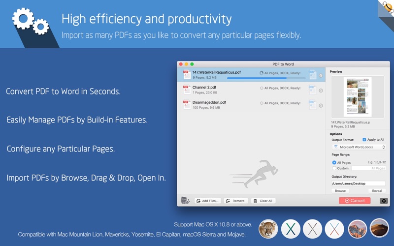 众所周知,将PDF转换为MS Office格式极具挑战性,但我们在格式和内容保存方面提供了无与伦比的准确性! === 离线转换,无需互联网,无需上传,无需无聊等待,隐私安全,100%在本地Mac上处理 === Flyingbee PDF to Word Pro可将PDF文件导出为完全格式化和可编辑的office Word文档,其中保留了原始文本、图像、布局、超链接、表格和bezier图形。 主要特点: +令人难以置信的易用性。 +专业PDF转换器。 +一次添加无限PDF。 +直接将PDF文件转换为完全格式化和可编辑的Word(.docx)文档。 +100%本地转换过程。 +将PDF导出为Word(.docx)、文本(.txt)、RTF(.RTF)和HTML(.HTML)文件。 +升级以解锁所有输出格式,如Microsoft Office(Word、Excel、PPT)、JPEG图像等常见格式和PDF编辑工具。 >使用起来非常简单 简单的工作流程,界面非常整洁清晰。 • 用户友好方便的界面。 • 通过拖放操作方便导入PDF。 • 在应用程序中预览一批PDF文件。 • 一键批量转换PDF。 • 轻松编辑或重复使用PDF内容。 >高效率和生产力 导入任意数量的PDF,以便灵活转换任何特定页面。 • 通过浏览、拖放和在中打开添加PDF的3种方法。 • 通过内置的插入、重新排列、删除和打开功能轻松管理PDF。 • 配置任何特定页面(例如1、2、16、35或所有页面)以满足您的需求。 • 本地处理PDF文件的速度达到100%。 >完美的准确性和布局,格式保留 所有元素,包括文本、图像、格式等,都将保存在Word文档中。 • 准确保留原始文本、图像、布局、超链接、表格和图形。 • 保留笔划或归档矢量图形,包括线条、箭头、矩形和贝塞尔曲线路径。 • 转换带有复制和打印限制的加密PDF。 • 将Adobe PDF转换为多种语言和1.0-1.7版本 • 将PDF文件输出到Office 2007版本(.docx),该版本可以在2007年和最新的Office应用程序之前打开。 >还有更多… 与我们的支持专家和其他产品会面。 • 100%免费更新。 • 快速电子邮件和Skype支持响应。 • 与Mac OS X 10.13-macOS 26.X或更高版本完全兼容。 • 查看适用于iPhone、iPad和Mac设备的PDF转Word。 ***注:**** • 此版本不支持OCR功能。扫描的PDF文件将被提取为Word文档中的图像,但是,我们建议您使用其他专业OCR应用程序从图像中识别可编辑的文本。 • 我们正在不断开发这款应用程序,如有任何疑问、建议或问题,请随时与我们联系。我们会尽快回复。 兼容多种办公套件,例如 Microsoft Office、WPS Office、MobiDocs、Polaris Office 和 LibreOffice。 提升转换速度 重构 PDF C++ 转换引擎 支持 macOS 26 Tahoe 系统 ------------ 需要 macOS 10.13 或更高版本,欢迎联系我们:support@flyingbee.com
