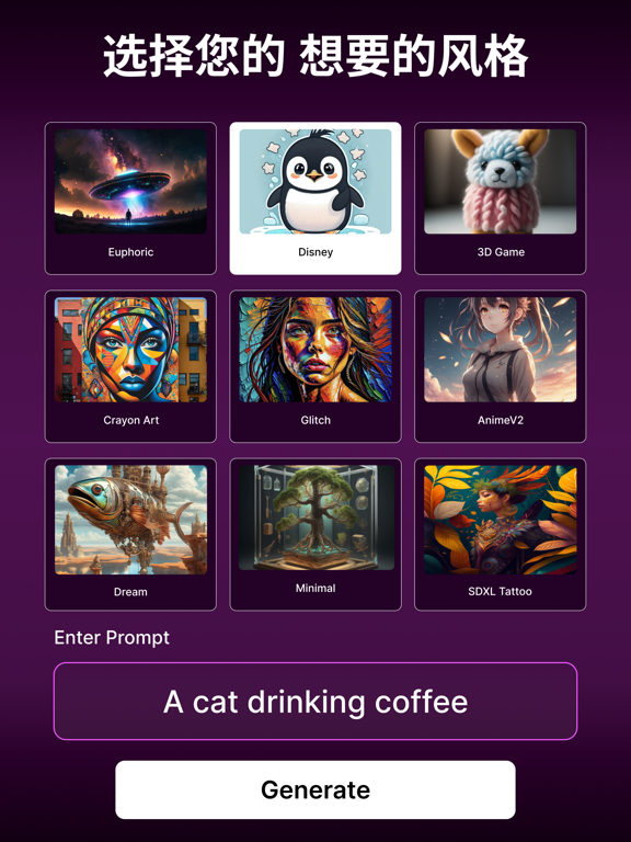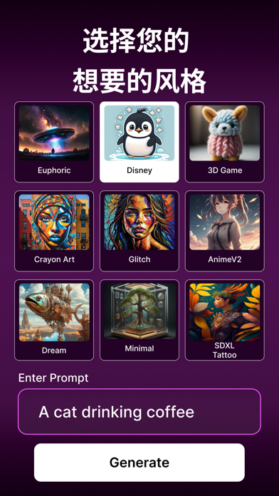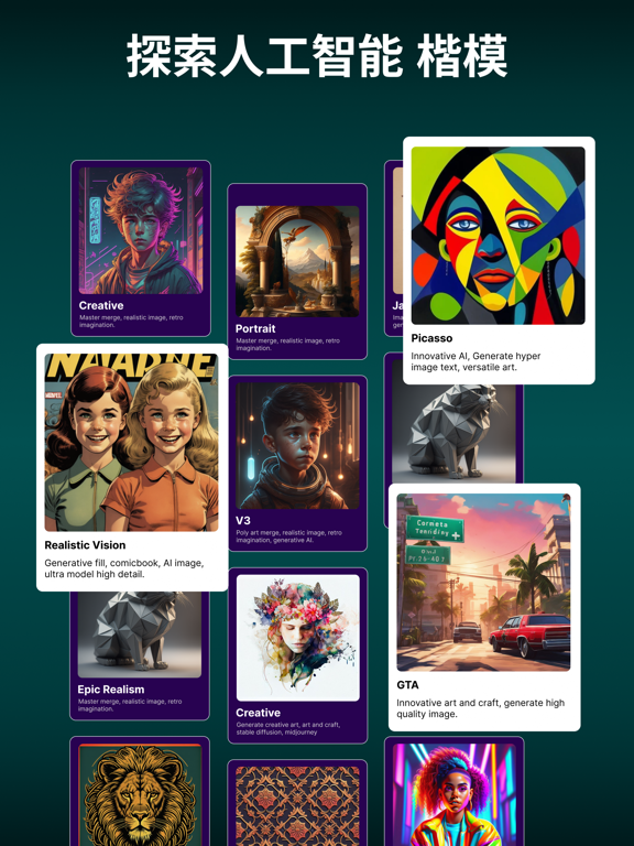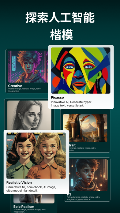 隆重推出我们的人工智能艺术生成器:以中途、稳定扩散风格生成令人惊叹的艺术。 使用我们的 AI 艺术生成器应用程序让您的想象力尽情发挥。 只需输入提示并选择一种艺术风格,它就会在几秒钟内为您创建漂亮的壁纸、图像、绘画和图画。 借助 AI 图像生成器,您可以创建任何您能想象到的东西。 ► 将文字变成艺术 您对一件艺术品有什么疯狂的想法吗? 像人类和动物的肖像或由不可能的几何图形组成的风景之类的东西? 有了人工智能艺术生成器,它可以在几秒钟内完成! ► 将文字转化为图像 只需提供描述或短语,然后观看我们的 AI 图像生成器以迷人图像的形式将其变为现实。 例如,将“雄伟的山峦日落”这几个字变成一幅令人叹为观止的山水画,或者将“银河冒险”变成一幅超凡脱俗的太空场景。 ► 将照片变成 AI 艺术(图像混合 - 图像变化) 从图像开始作为提示的视觉基础。 只需上传一张照片,选择风格,然后观看这款 AI Art Generator 应用程序如何对其进行转换,以及如何将多个图像无缝地融合成和谐的构图。 结合不同的元素、风格和主题,创造出独特的艺术品。 ► 编辑图像(修复) 轻松从 AI 生成的艺术作品中删除不需要的元素并增强您的图像。 通过编写简单的说明来更改您的图像和照片。 无论你想做什么,都有无限的可能性。 如果你想改变头发颜色、添加背景或调整灯光,你都可以做到。 利用 AI 将您的照片提升到新的水平! ► 选择您最喜欢的艺术风格 凭借我们广泛的艺术风格选择,您可以创造任何您能想象到的东西。 您可以使用 AI 生成的艺术创建十多种艺术风格,所有风格各异,包括梦想塑造者、写实、动漫、绘画、GTA5 艺术品扩散、像素艺术、赛博朋克、海报艺术、线条艺术、漫画、 复古、玻璃艺术、合成波扩散、剪纸、涂鸦等等! ► 使用高级设置微调您的杰作 对于那些想要更好地控制自己的艺术的人,我们提供高级配置,例如负提示、引导比例、降噪步骤、图像质量、增强提示和广角,让您可以微调您的创作。 ► 保存并分享: 可以将图像保存为各种格式,包括 PNG 和 JPEG。 此外,还与亲人分享图像。 ► 预定义的灵感和提示 探索各种想法和提示来激发您的创造力。 有多种预定义的人工智能生成艺术可供选择,您可以轻松找到激发您灵感的东西。 无论您是在寻找逼真的肖像、异想天开的风景还是抽象的表达,每个人都能找到适合的东西。 AI Art Generator 不断学习和进化,因此拥有无限的可能性。 你还在等什么? 从今天开始创造令人惊叹的艺术! 隐私政策:https://sites.google.com/view/aiimagegenerator-application/privacy-policy 使用条款:https://sites.google.com/view/aiimagegenerator-application/terms-of-use 欢迎使用我们的 Imagine AI 艺术生成器 探索我们的 No.1 Midjourney & Stable Diffusion 应用程序的新功能: - 150 多个最佳 AI 艺术模型和风格 - 背景去除剂 - AI超分辨率 - 小错误修复
