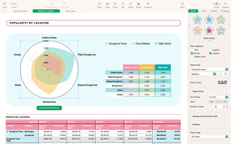 使用 Mac 版 Numbers 表格创建精美电子表格。从 30 多种 Apple 设计的模板中任选一种,开始制作你的家庭预算、清单、发票、抵押贷款计算器,以及更多表格。在灵活画布上的任意位置添加表格、图表、文本和图像。获取针对数百种功能强大函数的即时建议和内建帮助。你可以使用交互式柱形图、条形图、散点图和气泡图生动绘制数据。轻松过滤大型表格。使用数据透视表发现规律和趋势。 同时与他人协作 • 借助实时协作功能,整个团队可以在 Mac、iPad 和 iPhone 上、甚至在 PC 上同时合作处理电子表格 • 公开或与特定用户共享电子表格,查看当前与你一起处理文稿的用户,以及查看其他用户的光标来跟踪他们所做的编辑 • 查看协作电子表格中的最近更改列表,包括用户加入、批注和编辑的时间 • 适用于储存在 iCloud 或 Box 中的电子表格 精美的电子表格 • 30 多种 Apple 设计的模板为你的电子表格提供良好的开端 • 在灵活画布上的任意位置放置表格、图表、文本和图像 • 在单个工作表上添加多个表格并调整大小 • 使用媒体浏览器插入照片、音乐和视频 • 使用形状库中 700 多个可编辑的形状来优化电子表格 • 导入并编辑 Microsoft Excel 电子表格、逗号分隔值 (CSV) 和制表符分隔的文本 人人适用的公式功能 • 数百种功能强大的函数可供选择,包括 XLOOKUP 和 RegEx • 开始键入公式时即可获取函数建议 • 搜索集成的函数浏览器以获取内建帮助和公式示例 • 使用全新智能单元格视图获取实时公式结果、错误检查、精确数值和单元格格式 • 轻松将股票信息添加到电子表格 • 将喜欢的函数添加到“快速计算”以获取即时结果 一切完美契合 • 使用数据透视表和智能类别来以全新方式查看数据 • 快速整理和汇总表格以获取新的见解 • 插入精美的二维和三维图表,包括条形图、柱形图、折线图、面积图、饼图、圆环图和雷达图 • 使用交互式柱形图、条形图、散点图和气泡图生动显示数据 • 根据数字、文本、日期和持续时间的规则自动高亮标记单元格 • 轻松过滤大型表格以获取特定值、文本或重复条目 • 使用滑块、步进器、复选框、弹出式菜单和星级评分修改单元格中的数值 iCloud • 打开 iCloud,你便可以在 Mac、iPad、iPhone 上以及 Mac 或 PC 浏览器中的 iCloud.com 上访问和编辑电子表格 • Numbers 表格会在你修改后自动存储电子表格 共享作品 • 将电子表格导出为 CSV、TSV、PDF 和 Microsoft Excel • 使用“隔空投送”将电子表格发送给附近的任何人 • 通过“邮件”或“信息”快速、轻松地共享作品链接 部分功能可能需要访问互联网;可能需要另行付费并遵守相应条款。 • 使用 30 多个新高级函数,包括 LET、LAMBDA、FILTER、SORT 和 UNIQUE • 使用溢出数组查看单个公式在多个单元格间的结果 • 直接在电子表格中使用写作工具编辑文本(需要 Apple 智能和 macOS 15.4) • 使用快捷指令将电子表格导出为其他格式(需要 macOS 15.4) • 改进了与“无边记”之间的拷贝和粘贴操作(需要 macOS 15.4) • 提高了导入或导出 Microsoft Excel 电子表格时的兼容性
