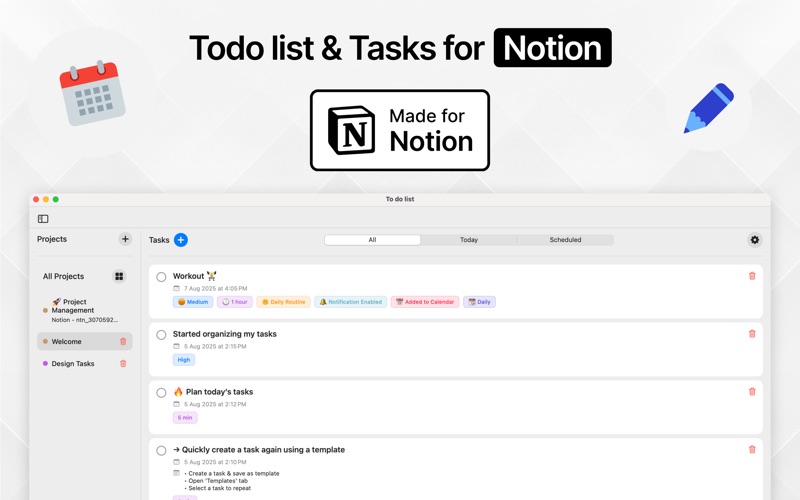 Notion 的待办事项列表和任务 不隶属于Notion--独立开发。 什么是 Notion 的待办事项列表和任务? 该应用程序是一个功能强大的待办事项列表,旨在帮助您组织工作和个人生活。借助自动化工具和无缝集成,它可以与您的日历和概念数据库连接,以节省时间并提高生产力。 主要特点 日历同步 连接您的 Apple 或 Google 日历,在一个地方管理任务、截止日期和日程安排。控制您的项目和时间。 概念整合 直接从您的 iPhone 自动化您的 Notion 数据库。让您的工作流程更快、更轻松,无需额外的努力。 任务模板 为常见任务创建模板以节省时间。专注于更重要的工作,同时自动处理重复性任务。 重复任务 设置重复的任务,这样您就不会错过重要的截止日期。简化日常工作并减少体力劳动。 自定义通知 调整提醒以满足您的需求,并确保您掌握最重要的事情。 苹果设计 该应用程序按照 Apple 的设计原则开发,在 iPhone 上提供简单、直观和流畅的体验。 掌控您的任务、简化工作流程并让每一天都井井有条。 订阅计划: 每周订阅:3.99 美元(1 周) 每月订阅:7.99 美元(1 个月) 每年订阅:29.99 美元(1 年) 应用内购买计划: 终身计划:39.99 美元(一次性购买) 除非在当前订阅期结束前至少 24 小时关闭自动续订,否则您的订阅将自动续订。确认购买后,付款将从您的 iTunes 帐户中扣除。您的帐户将在当前订阅期结束前 24 小时内收取续订费用。自动续订的价格与原始订阅的价格相同。购买后,您可以前往 App Store 上的帐户设置来管理您的订阅并关闭自动续订。 免责声明: 此应用程序是一个独立的产品,不隶属于 Notion、不受其认可或与 Notion 有关。应用程序仅使用Notion的集成功能。 隐私政策:https://lomeappsllc.cc/privacy-policy 条款和条件:https://lomeappsllc.cc/terms-and-conditions 最终用户许可协议:https://www.apple.com/legal/internet-services/itunes/dev/stdeula/ 概念和日历的待办事项列表和任务现已提供更好的功能和同步功能 - 错误修复和性能改进 - 同步问题已解决