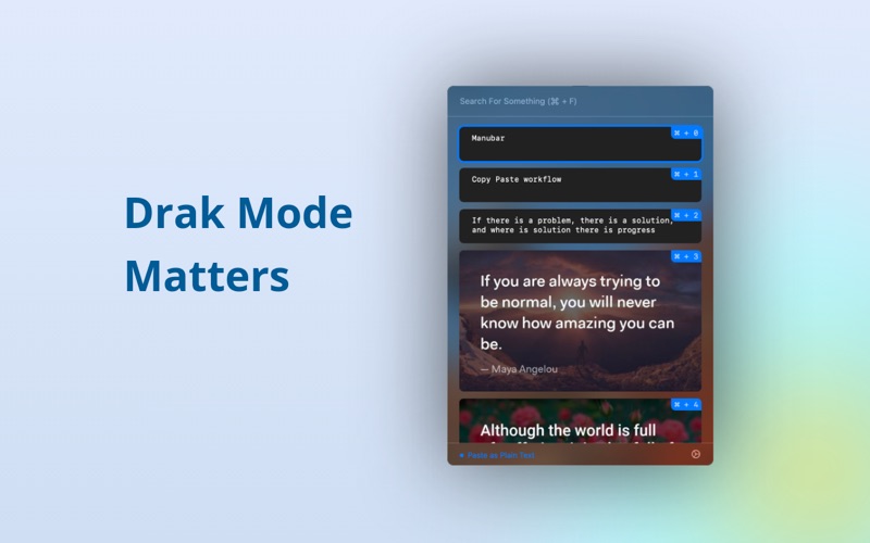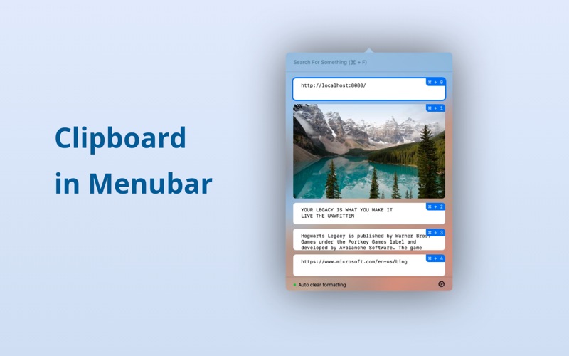ClyPaste是一个菜单栏应用程序,旨在通过提供高级剪贴板管理功能来简化您的工作流程。ClyPaste赋予用户保存和迅速粘贴已复制的数据的能力,从而增强了在各种任务中的效率和生产力。 主要功能: 自动保存已复制的数据: ClyPaste会自动捕获您复制到剪贴板的任何数据,确保不会丢失任何信息片段。这个功能非常有用,尤其是当您需要同时处理多个任务并需要在不同的已复制内容之间切换时。 快速粘贴到其他应用程序: ClyPaste与您的macOS系统中的其他应用程序实现了无缝集成。您可以轻松地将以前复制的项目粘贴到不同的应用程序中,无需不断来回切换。 纯文本模式: 在使用ClyPaste之前:复制一些文本,粘贴到文本编辑器中,将其转换为纯文本,然后再次复制。 使用ClyPaste,只需复制和粘贴,不再需要这些步骤。我们会无缝处理所有这些步骤。 支持快捷方式: 时间至关重要,ClyPaste也意识到了这一点。我们支持可自定义的键盘快捷键,允许您迅速访问其功能。无论是自动保存剪贴板内容、粘贴到特定应用程序,还是将富文本转换为纯文本,这些快捷键通过减少不必要的点击和导航来增强您的工作流程。 bug修复和一些优化