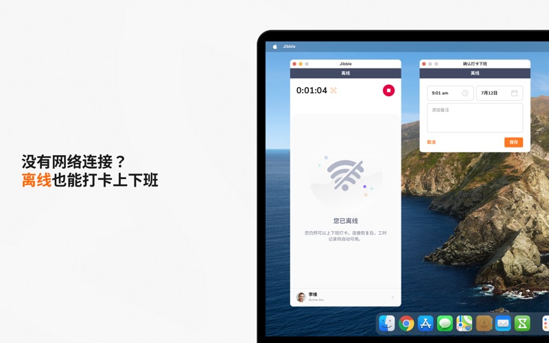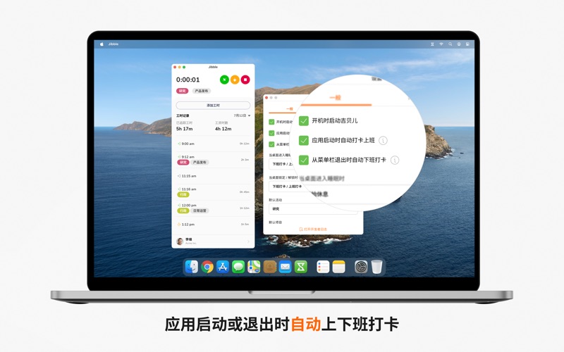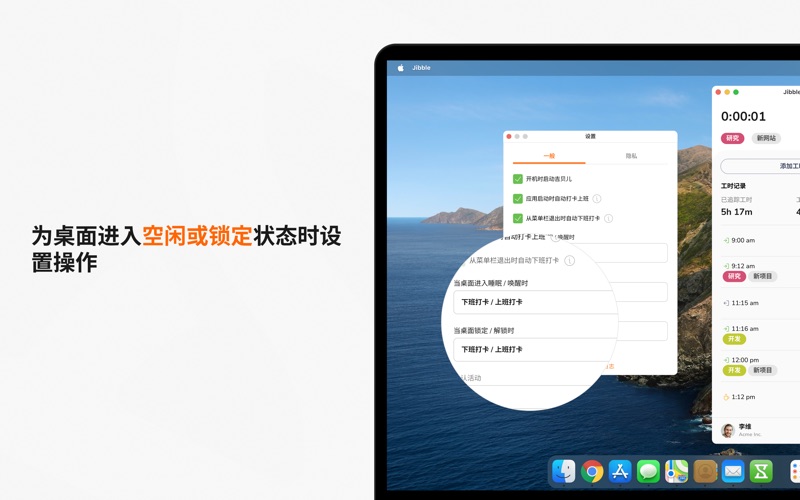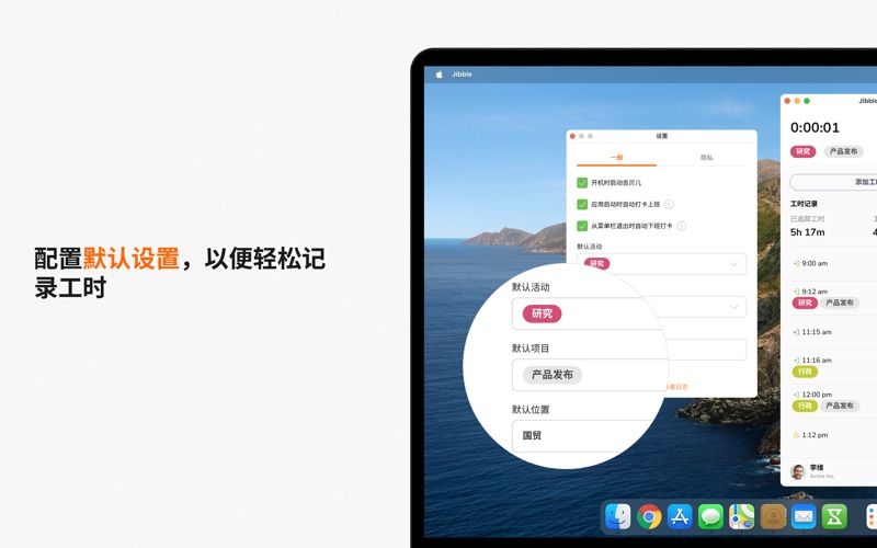 吉贝儿是全球主流且完全免费的上班打卡软件,备受数万用户的信赖。从小型企业到特斯拉、维珍酒店、必胜客等全球企业,我们都在通过精准、轻松的工时追踪帮助他们简化运营。 无论是团队还是个人,吉贝儿都能让您轻松追踪工作时长、管理工时表,并监控生产力——可以在桌面端完成这一切。 主要功能: • 轻松工时追踪 - 只需几次点击即可快速启动和停止计时。 • 自动上下班打卡 - 应用启动时自动打卡上班,退出时自动打卡下班。 • 离线功能 - 即使离线也能继续追踪工时,联网后数据会自动同步。 • 截图记录 - 内置截图功能,提供工作可视化证明,即使离线也能使用。 • 活动与项目管理 - 将工时分配到具体活动或项目,轻松管理可计费工时。 • 跨设备同步 - 数据可在不同设备间同步,实现无缝工时追踪。 • 详细报告 - 生成综合报表,帮助分析工作模式与生产力。 立即体验吉贝儿 100% 免费的上班打卡软件。立即下载吉贝儿,全面掌控您的工时追踪、生产力和工时表! Bug fixes