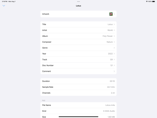 LoveMusic是一个本地音乐播放器 / 离线音乐播放器 / 本地音频播放器。支持多个音乐库,iCloud不同设备同步,信息编辑,ID3标签编辑,歌词编辑... [支持的格式] - AAC, AIFF, CAF, FLAC, MP3, M4A, WAV - M4V, MP4, MOV [管理方式] 1, 可以通过 LoveMusic 程序进行管理 2, 可以通过设备自带的 文件 程序进行文件管理 2.1, 文件程序 > 我的设备 > LoveMusic文件夹 : 可以管理本地文件 2.2, 文件程序 > iCloud云盘 > LoveMusic文件夹 : 可以管理iCloud Drive文件, 支持不同设备同步 注意:如果一个文件存在用户自定义的播放列表里,通过 文件程序 移动文件,可能造成播放列表文件链接错误 [iCloud] - 支持iCloud文件备份,并可以选择下载部分文件到设备 - 通过iCloud, 可以在iPad,iPhone等多个设备共享资源;(如Mac上音乐文件,可以直接拖放到 iCloud Drive > LoveMusic > 我的音乐 文件夹,iPhone, iPad可以看到相关文件,并选择是否下载) [文件组织] - 可以建立多个音乐库,每个音乐库可以管理不同类别的资料。比如建立以下音乐库:我的音乐,我的诗歌,孩子的音乐。 - 每个音乐库独立管理 - 可以按照歌曲,歌手,专辑,文件夹等方式浏览资料库里的文件 - 播放列表管理 [文件导入] - Files 导入 - WiFi 传输(HTTP) - Airdrop - Mac导入 - 照片导入 - 微云,百度盘等网盘可以通过连接Files后,通过Files导入 [信息编辑] - 支持编辑部分文件的信息 ( m4a, mp3, mov, mp4, m4v) - 编辑歌词 1, 如果软件支持在相应的音频文件中嵌入歌词,并且LRC文件不存在,歌词将保存在音频文件中 2, 如果软件支持在相应的音频文件中嵌入歌词,并且LRC文件同时存在,歌词将同时保存在音频文件和LRC文件中 3, 如果软件不支持相应音频文件的嵌入式歌词,将创建同名的LRC文件并保存歌词 [播放样式] - 图片 - 黑胶唱片 - CD - 写真图片 [播放功能和小技巧] - 定时:时间 / 歌曲数量。 - 倍速:点击进度条右边的时间,可以显示此功能的快捷操作。 - 快进快退 : 点击进度条左边的时间,可以显示此功能的快捷操作。 - 上一首/下一首 : 在列表页面,底部的播放栏可以左右滑动切换上一首和下一首;在播放页面也可以左右滑动切换。 - 音量 : 播放页面最右边可以上下滑动调节音量 - 屏幕亮度 : 播放页面最左边可以上下滑动调节亮度 [购买] - 此程序可以免费下载体验,预览 - 内置的一些功能需要购买才能使用 - 目前所有购买项目都是一次购买,终身使用。 [......] - 程序尚有很多不足之处,我们会不断改善的,更多功能也会陆续到来。 :-) - 适配 iOS 18 - 问题修复 & 细节优化