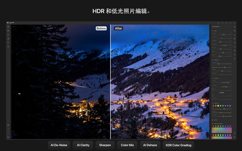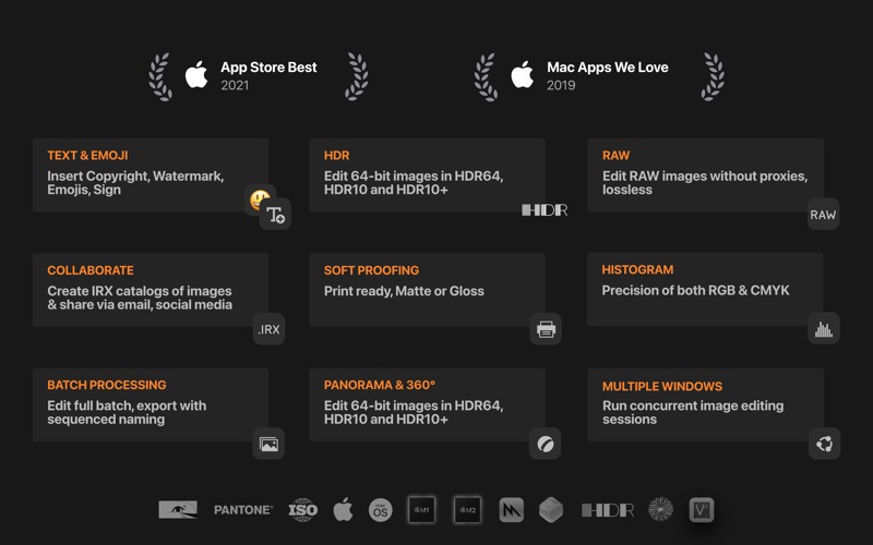 **2023 年最佳应用商店** **我们喜爱的 Mac 应用程序** 预设 | 天空替换 | 自定义叠加 | 正文 | 水印 | RAW | HDR64 | 人工智能自动增强 | 全景 | 面部工具 | 查找表 Irix HDR Classic 带来栩栩如生的 HDR 照片编辑,为全尺寸专业编辑工具集提供一键式编辑。 • 天空替换(SkyXpress)- 替换天空并引入天气。使用 AI Edge Detect 导入自定义天空并与图像合并、组合、集成以获得原生外观 • Quicksets(预设和过滤器)- 一键式、社交媒体优化的 200 多个预设,可进行即时编辑。查看应用于您的照片的预设的实时预览,选择并单击以完成您的照片 • AI 自动增强 - 进行一键式自动专业风格编辑。 Irix HDR Voxell AI 引擎经过 12+ 百万张图像的训练,并应用研究的摄影技术来增强您的照片 • 专业颜色分级- 带有高光和阴影的颜色分级,调整整个图像或选定区域的对比度、颜色和白平衡、黑电平、饱和度和亮度 • 叠加 - 导入自定义叠加并引入人造光、神光、水中倒影、光晕效果、涟漪、复古、令人惊叹的背景等效果。 • 本地调整- 使用蒙版和画笔进行本地化编辑。应用径向、渐变、画笔、亮度、深度蒙版。在选定区域插入自定义覆盖。 • 文本、表情符号和水印- 风格化文本、插入版权、水印或签名。用表情符号表达情绪 • LUT - 以 .CUBE、.VF、.3DL 格式导入 LUT。将您自己的 LUT 制作为 .CUBE 文件 • 深度编辑- 对任何深度层应用局部和全局调整或插入叠加 • 360° 和全景编辑 - 编辑、查看和导出,最适合景观设计 • 64 位图像 - 使用 64 位精度的 GPU(Nvidia、AMD、英特尔)以全保真度处理 8 到 64 位图像 • 支持的 ICC 色域 - XDR、HDR、P3、sRGB、Adobe RGB、CMYK、灰度、PANTONE© 和 LAB 色彩空间 • 在线协作 - 与同事共享图像目录 (IRX),以便在任何 Web 浏览器中预览您的工作。或者简单地移交包含所有编辑图层的目录,然后可以从您离开的地方恢复编辑 • 相机支持 - 编辑来自索尼、尼康、柯达、佳能、松下、理光、三星等的 RAW 照片。 • Voxell-G Graphics 和 Voxell AI 引擎将色彩空间推向人眼感知的边界,并针对高达 64 位的图像执行 XDR、HDR、HDR10、HDR10+ • Irix HDR“GPU 优化器”驱动 CPU 和 GPU 协同工作,返回清晰、无损、全保真编辑 • 为 Adob​​e Lightroom、Photoshop、Premier Pro、DaVinci Resolve、Final Cut Pro、Pixelmator 和 OBS 创建和销售预设/LUT • Apple Technologies - 使用 CoreML 和 Metal 渲染引擎为 M1、M2、Intel 的 macOS 构建。对 Sidecar、Apple Photos 和 iCloud 的支持增加了您的 Apple 生态系统 基本功能 - 色温、色调、自然饱和度、饱和度 - 光线 - 曝光、亮度、对比度、高光、阴影、白色、黑色、漫反射 - 裁剪、旋转、翻转。 FB、Twitter、Instagram、Pinterest 的预设作物 - 治愈和克隆 高级功能 - RAW图像编辑 - 透视和仿射(拉直),梯形失真校正 - 网格变形 - 手绘液化和恢复 - AI 工具 - 清晰度、去雾、去噪、锐化、模糊(散焦)、散景。夜间摄影编辑的特殊工具 - 镜头和色度光学校正 - 晕影、谷物和像素化 - 面部和塑身工具 - 皮肤修饰、去除瑕疵、上镜外观 专业版功能 - 边缘检测和擦除 - 批量处理 - 无限层和历史 - 软打样 - 哑光和光泽 - 动态 RGB 和 CMYK 直方图 - HSL 色调曲线 - 完全访问 Exif 和元数据 - 拖放高达 200 兆像素的图像、幻灯片中的实时取景、平移、缩放 - 打开独立的多个窗口或参考图像 - 压缩图像格式:JPG、JPEG、PNG、BMP、GIF、GRAY - 原始图像格式 - TIFF、TIF、CRW、CR2、DNG、KDC、MOS、NEF、NRW、PTX、R3D、RAF、RAW、SR2、X3F 等。 此应用程序包括免费版、试用版和专业版。专业版可以从应用内购买获得。 条款和条件:https://www.apple.com/legal/internet-services/itunes/dev/stdeula/ 隐私政策:https://irixhdr.com/privacy_policy.pdf Bug fixes and performance improvements.
