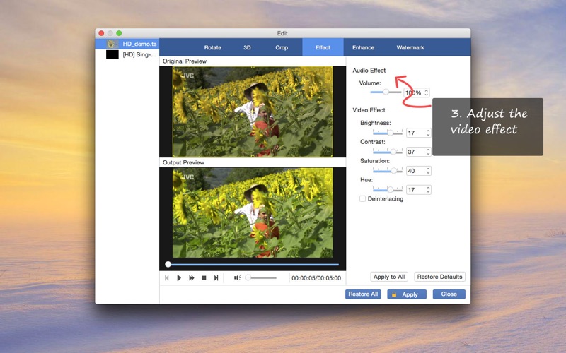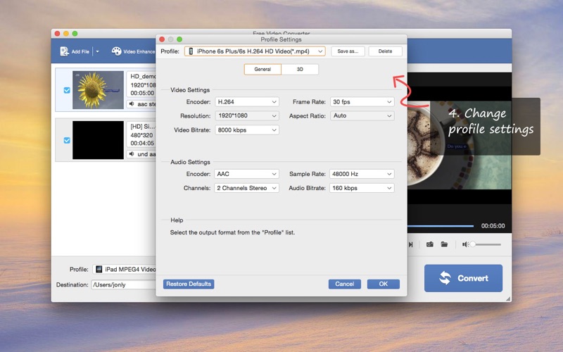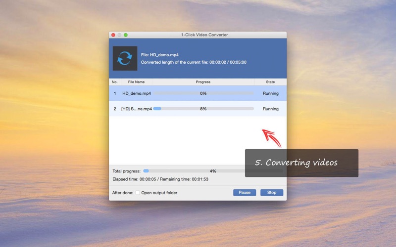 一键视频转换器 - 快速、简单、免费的视频转换器。 这个免费视频转换器软件可以转换几乎所有的视频/音频文件格式,如MTS,M2TS,TS,TRP,MP4,MOV,M4V,MKV,AVI,WMV,FLV,WTV,MP3,FLAC,WMA等与任何流行的视频/音频格式与无与伦比的转换速度。然后,您可以在任何数字设备上欣赏转换后的视频。 主要特点 •任何视频转换器 - 将任何视频转换为流行的视频格式 是的!您可以使用它将任何格式的视频转换为其他常用格式。您录制的视频、下载的视频、使用摄像机拍摄的视频...任何视频,你可以加载到这个视频转换器,包括高清和4K视频。此功能将使您的视频与所需的视频播放器兼容。 • 视频到音频转换器 - 将视频转换为音乐 此功能将帮助您从视频文件中提取音频。只需选择您需要的音频格式,如 MP3、M4R、OGG、WMA、WAV、M4A、AMR 等,视频就会转换为音乐文件。 • 简单的视频切割机和合并 它具有免费的视频剪切和合并功能,这将有助于您切断不需要的部分,合并左侧的,或将多个视频/音频文件合并到一个。 • 定制转换 我们为iPhone、iPad、iPod、苹果电视、三星、华为、索尼、LG、小米、HTC、Xbox等热门媒体播放器和编辑软件提供定制个人资料。您可以直接选择所需的格式,而无需浪费时间自行搜索。 • 预览和快照 它有一个内置的播放器,以帮助用户预览视频效果。在预览期间,用户可以捕获喜爱的图片并将其另存为图像。 福利:免费 2D 到 3D 转换器 - 其实可以免费转2D视频 您可以免费使用此功能。请注意,如果从"编辑"窗口选择 3D 效果,则需要支付应用内购买费用。但是,如果您从配置文件中选择 3D 视频,则可以免费将 2D 视频转换为 3D 视频。单击"设置 - 3D",您可以调整 3D 效果。 *它适用于Mac OS X 10.6或更高版本! 需要帮助?请通过https://www.anymp4.com/app-store/contact.html联系我们,您将在24小时内收到回复。 1. 解决部分文件预览和输出只有音频 没有画面的问题 2. 提高了视频转换的稳定性和速度