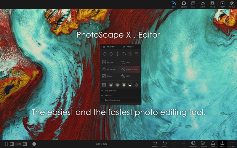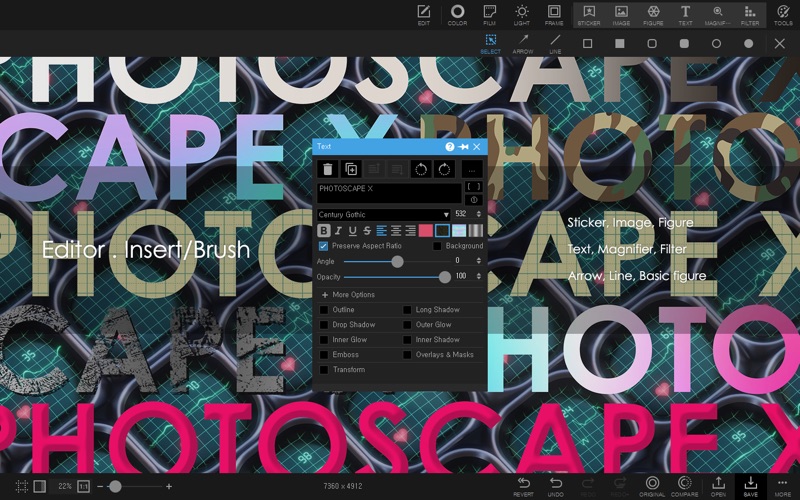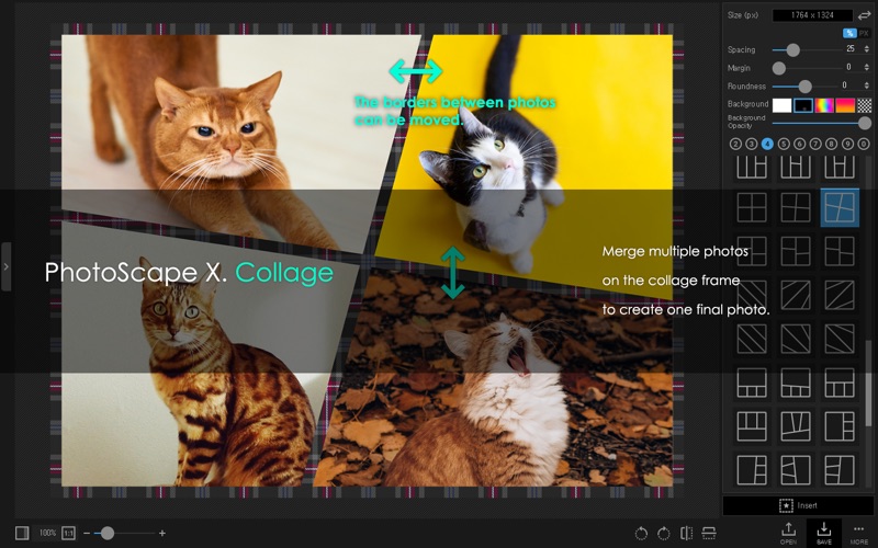 PhotoScape X 是一款简单而有趣的照片编辑和修正软件。 主要特点 - 照片扩展程序(Photos Extension ) - 编辑(Editor): 颜色和亮度调整,白平衡,背光修正,加边框,气泡提示,马赛克,添加文字,绘画图片,剪裁,缩影,人像美容,高动态范围,去雾,3D效果,镜头校正,去红眼,液化,污点修复画笔,仿制图章 - 裁切(Cut Out): 移除图像的背景(魔术橡皮擦,套索,画笔) - 批处理(Batch): 一次性编辑多张照片 - 查看(Viewer): 查看你的照片文件夹,创建幻灯片模式 - 拼贴(Collage): 合并多张照片到一张 - 合并照片(Combine): 可以垂直或水平合并多张照片到一张照片 - GIF 动画制作(GIF Creator): 用多张图片来制作 GIF 动画 - 打印(Print): 打印证件照,CD 封套,护照照片 - 截屏(Screen Capture): 捕捉屏幕并保存 - 颜色选取(Color Picker): 放大照片,搜索或选取颜色 - 改名(Rename): 一次性修改多找照片名字 - 分割(Split): 把图片切割成不同的部分 - 照片合并(Photo Merge): 焦点合成,合并到 HDR - 宏 (Macro): 记录动作 - 语言(Languages): English, Español, Português, Deutsch, Français, Italiano, Nederlands, Polski, 한국어, 日本語, 简体中文, 繁體中文 All-in-One: Photo Editor, Batch Editor, Photo Viewer, Cut Out, Collage Maker, Animated GIF Creator, Combine, Print, Screen Capture, Color Picker, RAW image and More. PhotoScape X is a fun and easy photo editor that enables you to fix and enhance photos. New Object Effects: Inner Glow, Inner Shadow, Emboss New Image Effects: Outline Added Background, Fill, Color, Masks options to Image and Sticker Objects Added Mask option to Color and Film Effects Added Close menu to Collage tab Added 'Merge Selected Layers’ to Editor tab Added 'Font Favorites' Added 'WEBP Quality option' Added 32 Camouflage Patterns Added 180 Flower Stickers Added 469 more Pixel Stickers Selecting and Editing Multiple Objects Improved Object Effects: Long Shadow, Overlays & Masks Improved Shadows/Highlights Filter Improved UI Fixed bugs