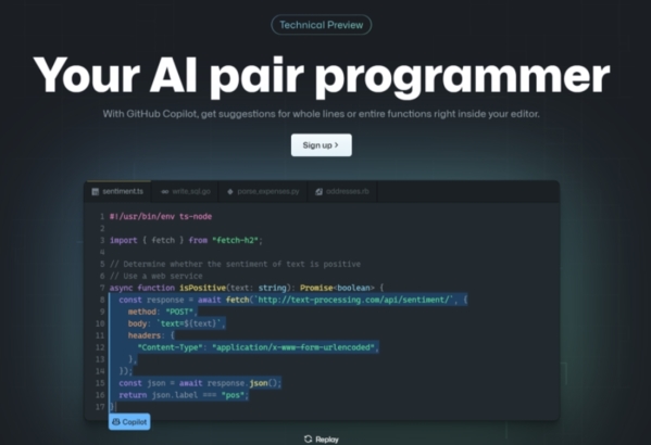 GitHub Copilot 可以根据上下文自动写代码,包括文档字符串、注释、函数名称、代码,只要用户给出提示,就可以写出完整的函数,将程序员从重复的编写中解放出来。