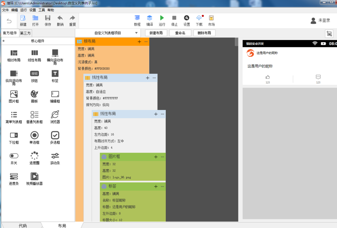 猎码独创的安卓布局编辑器,使用起来简单方便, 大大地提高布局编辑效率。同时,将界面的显示和编辑功能分离, 使得布局结构一目了然,代码编写更胸有成竹。
