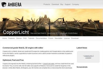CopperLicht 是个 WebGL 库,同时也是 JavaScript 3D 引擎,可以创建 3D 游戏和网页应用。它使用 WebGL canvas