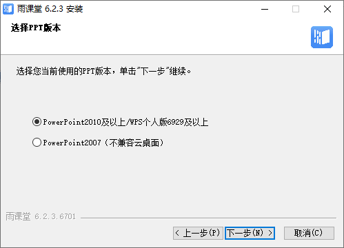 3、继续安装前阅读协议,选择ppt版本,默认2010,点击下一步。