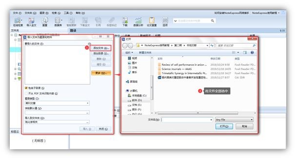 选择你要导入的文献的文件夹,然后单击左上角「导入全文」,或者单击右键后再选择「导入文件」。