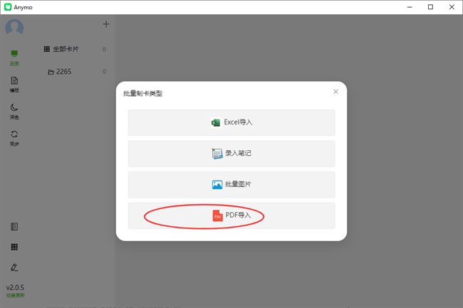支持PDF导入 本次更新比较重要的功能。点击客户端上的【批量制卡】即可看到。