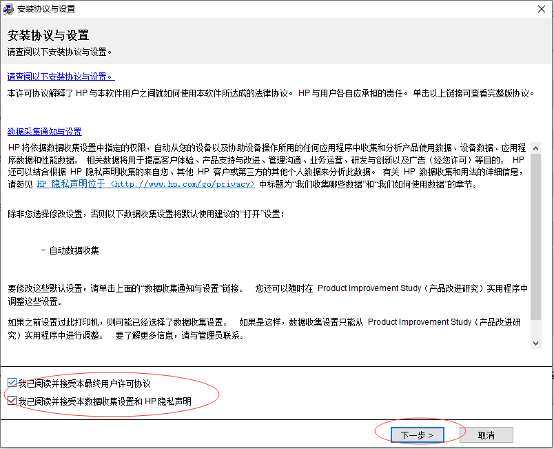 4、出现安装协议和设置,勾选我已阅读,点下一步