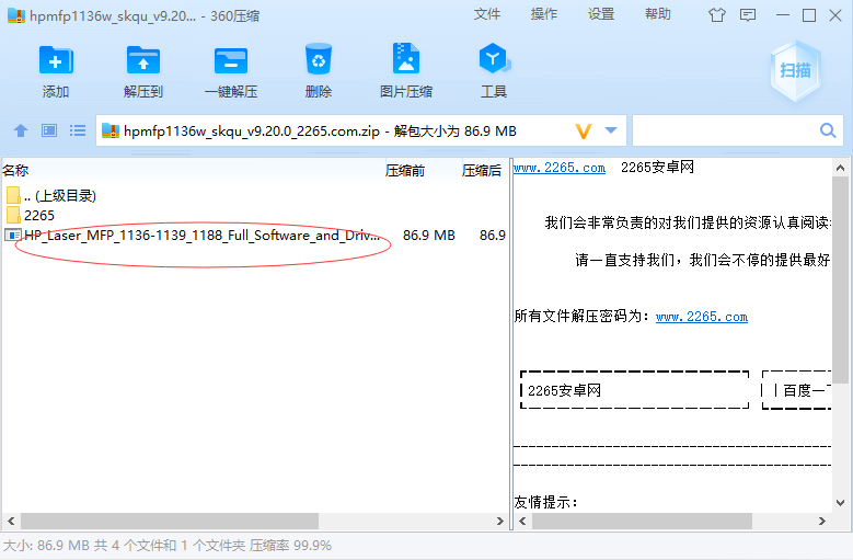 1、在本站下载驱动解压缩,双击打开解压出来的“HP_Laser_MFP_1136-1139_1188_Full_Software_and_Drivers_1.02.exe”文件