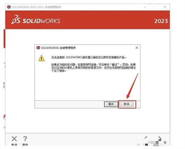 提示无法连接SOLIDWORKS服务器,直接取消