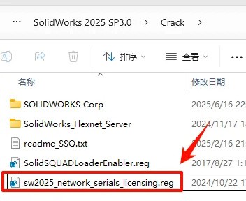 导入注册表 sw2025_network_serials_licensing.reg