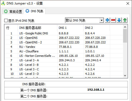支持dns列表功能,可以在软件管理全部服务器,方便以后切换。