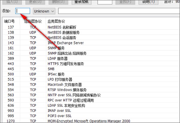 7.可以在软件选择插入新的端口或者是添加新的内容,下方提供服务器以及传输协议的提示