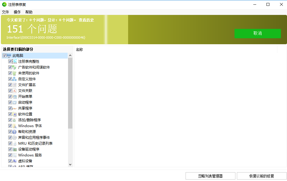 能够快速扫描计算机注册表并修复错误,使系统更加稳定和高效,保证后续修复错误的话可以即使撤回。
