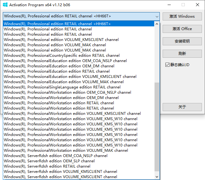 使用该程序非常直观:您选择一个许可证并尝试“激活”它。程序本身为该特定许可证选择适当的方法。可永久激活的许可证是永久“激活”的,而 KMSCLIENT 许可证的“激活”期为 4085 年。