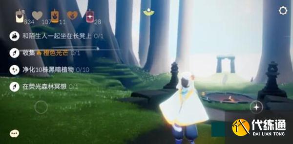 2、在雨林水母图的高台小金人处附近收集橙色光芒,