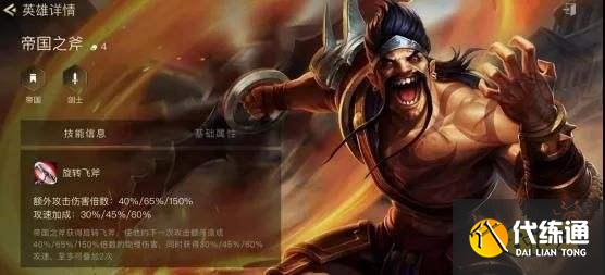 帝骑德莱文—S1最火的体系之一,从技能属性可以看到德莱文的飞斧是倍数伤害并且,配合双帝国还能提升50%伤害,成型的德莱文就是极致的物理输出。