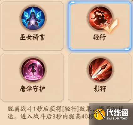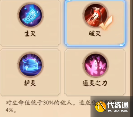 接着可以选择破灭这个阴阳术。破灭的效果可以提升青行灯对于低血量敌人的伤害,进一步提升她的斩杀能力。然后也可以选择轻行。对于青行灯来说利用1技能的减速留人或者追击都是非常重要的手段,所以在移速上有着一定的要求。而轻行刚好可以提升青行灯的移速。也让她在前期的gank支援效率上有着不小的提升。