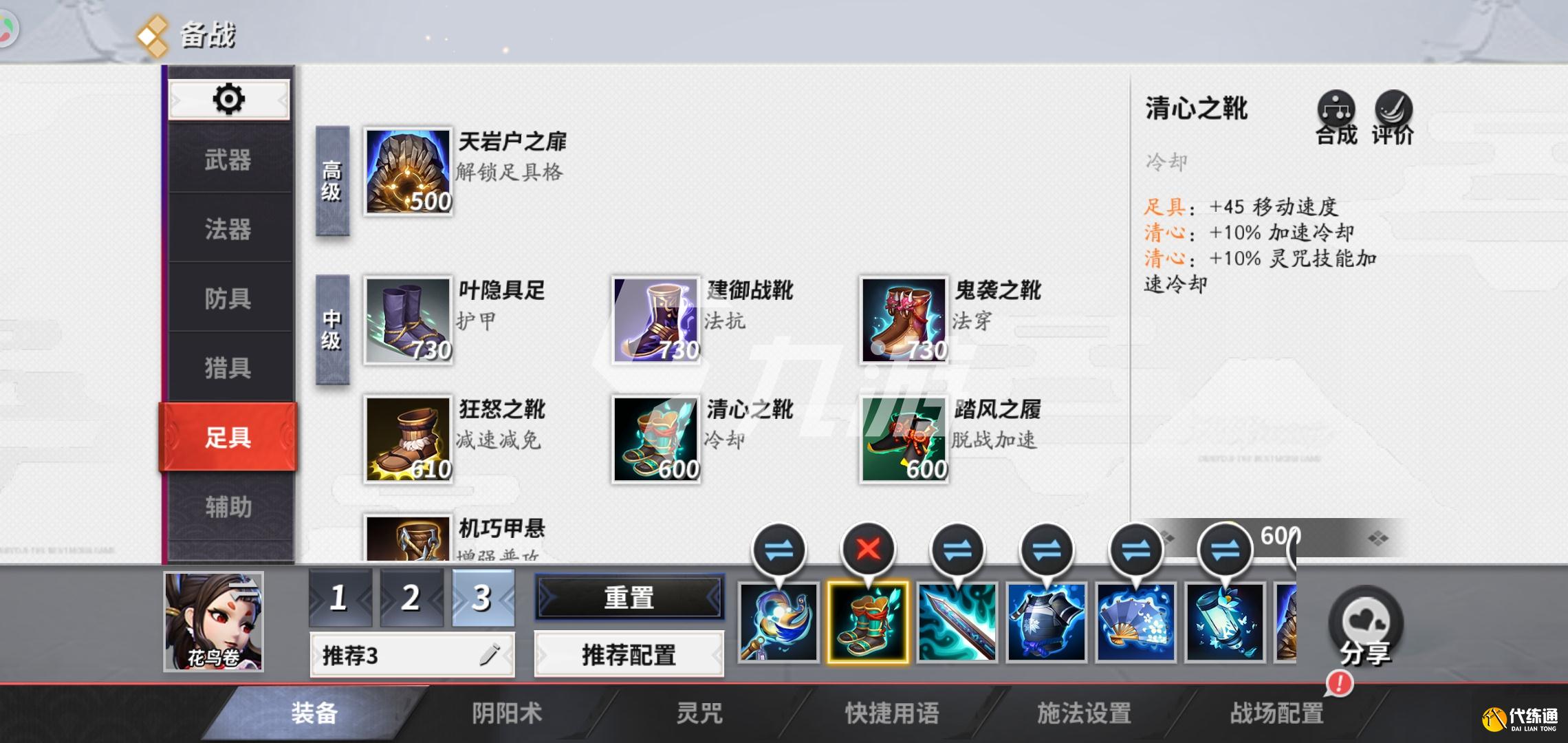 第二件装备我们就出清心之靴,这件装备可以增加自己的移动速度的同时,也可以给自己增加10%的减CD效果,而且还可以增加10%的灵咒减CD效果。