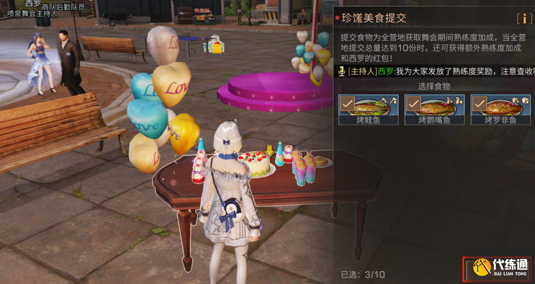找到舞会的食物长桌点击提交美食(每人最多可以提交十次),即可获得新币*600、营地贡献*50(提交次数越多获得奖励会增加噢)