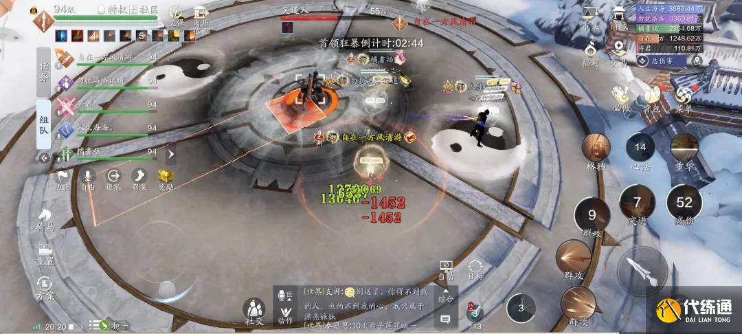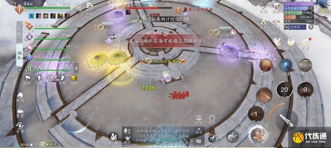当三蕊阵进入到第三式之后,每次BOSS释放完三蕊阵都会接着释放一个圆形大范围AOE技能。该技能的伤害极高,必须全员三段跳躲避。