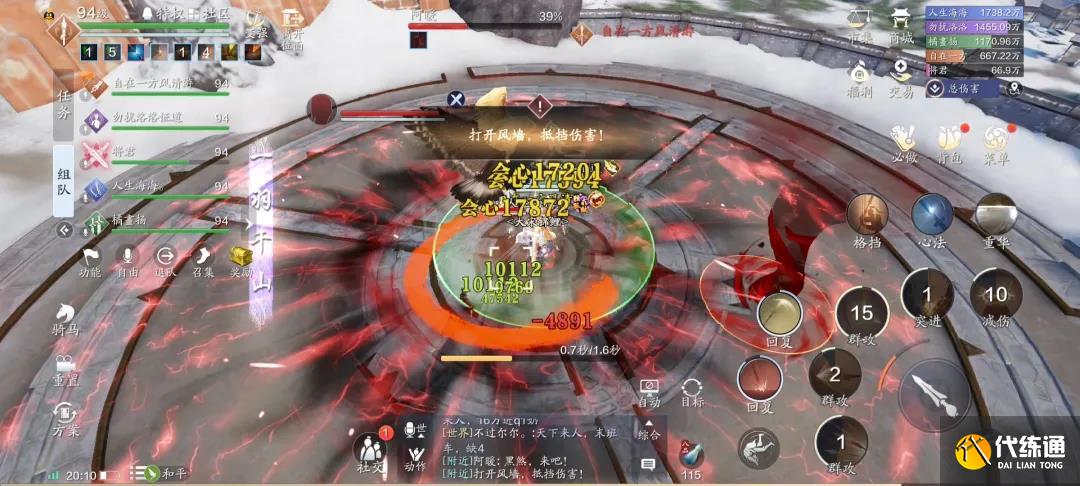 当看到屏幕上出现“打开风墙,抵挡伤害”的提示后,立刻到场地中心开风墙。T注意留仇恨技能吸引老鹰仇恨,治疗开暮雪,同时全力给T补血,DPS尽快清掉老鹰。