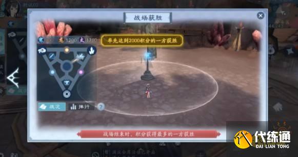 玩法说明:每个帮会将协助寒光谷、龙渊阁、太玄楼其中一方进行战场争夺,占领据点、抢夺物资车归属、矿点采集,积分率先达到2000分的一方获得战场胜利。