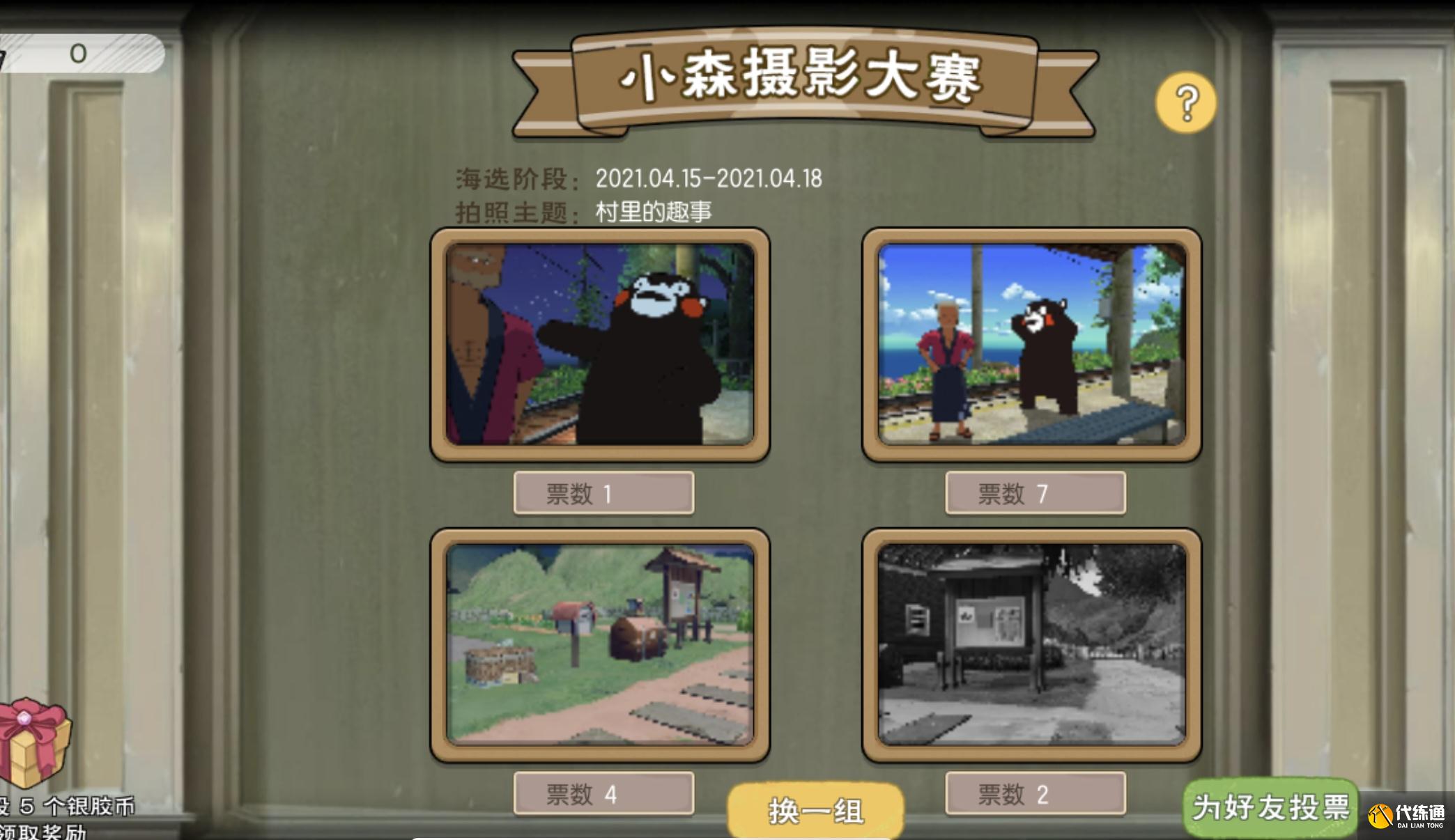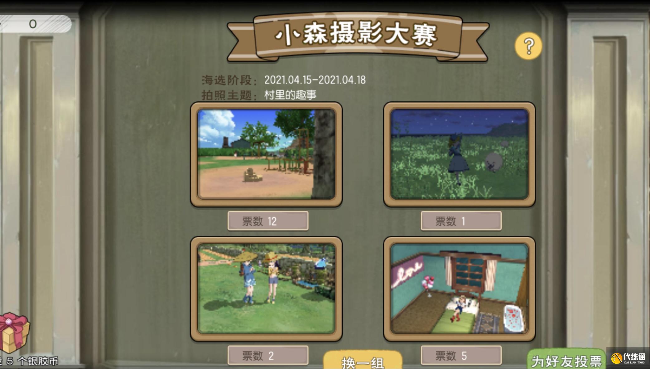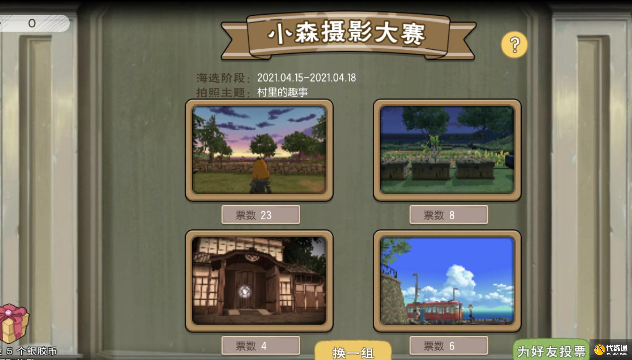 在海选阶段,玩家们可以点开投票页面,给系统推送的摄影作品投票,也可以选择“换一组”,直到刷到自己喜欢的作品。除此之外,还可以为自己参加了比赛的游戏好友投票,投票的自由度比较高。