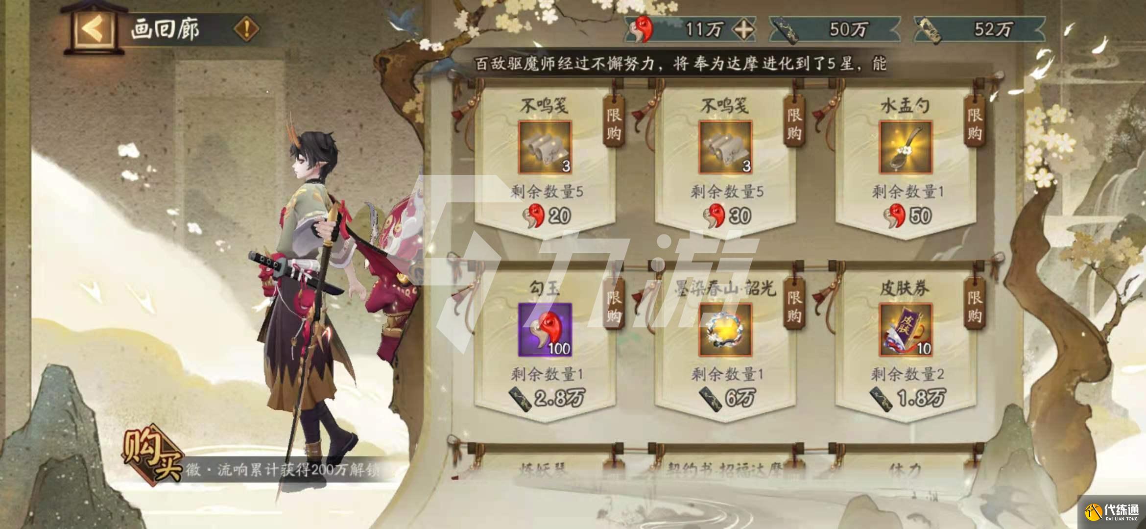 5.灵感取材,想要在绘画卷中绘图,就一定需要通过灵感取材来实现。玩家每日有30个不鸣笺,每次挑战需要消耗一个,想要获得更多道具可在商店中花费勾玉购买。挑战怪还是比较容易对付的,一般的一波流阵容都能打,缘结神+阿修罗+炼狱茨木童子+千姬+铃鹿御前,群体输出式神都可。