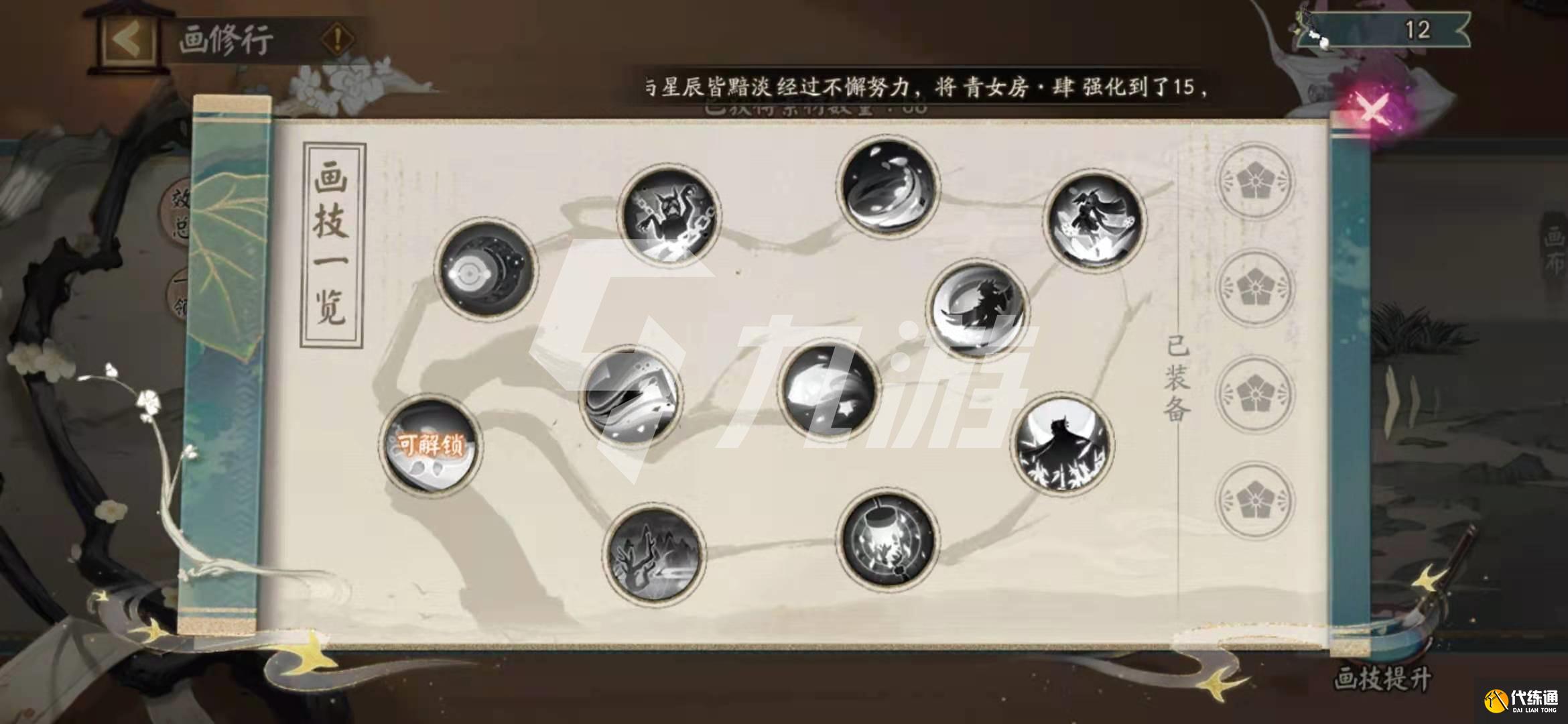 2.画修行,在灵感取材中获得的动植物材料可以在这里领取对应的属性加成,还获得额外的技能让玩家在活动挑战中获得更强的战斗力,也大大减少了新手玩家挑战难度。