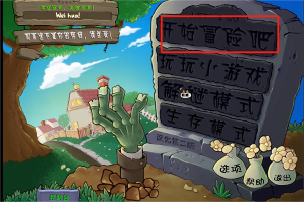 4、重新回到游戏的主界面之后,玩家只需要点击【开始冒险吧】按钮即可开始自己的植物大战僵尸之旅。