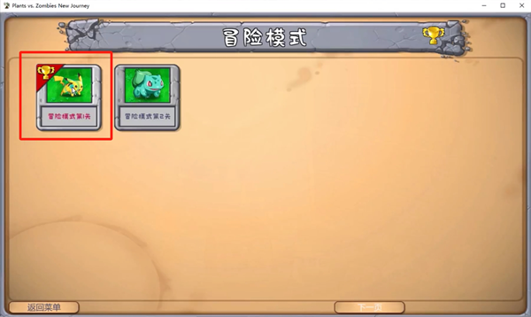 2、进入冒险模式后可以选择关卡进行挑战,我们可以选择以第一关模式为主来讲解;